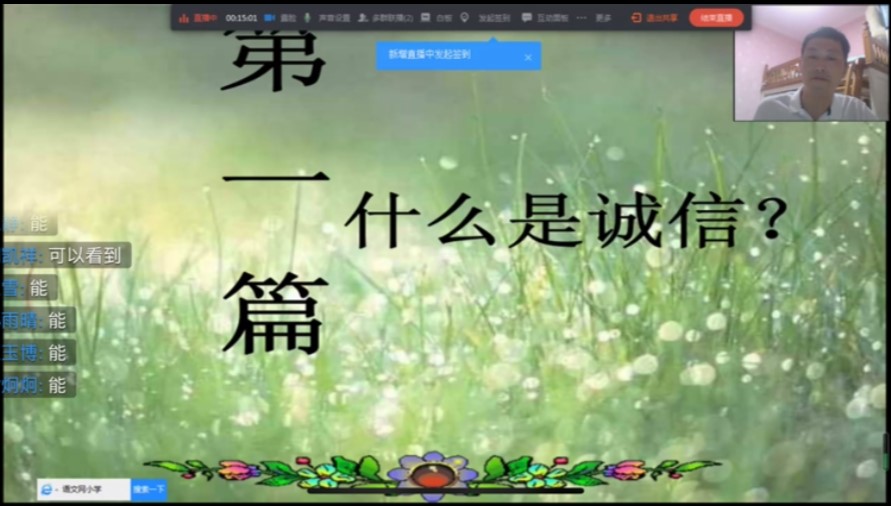 2020年6月15日下午,体育学院利用钉钉办公软件开展了关于诚信教育的主题班会。班会由李海磊老师主持,体育学院全体同学参与。